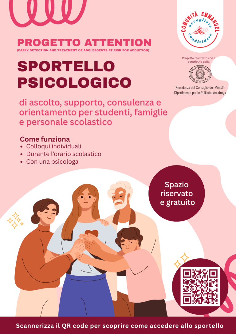Se stai attraversando un momento difficile, non sei solo. Il progetto ATTENTION offre ascolto e supporto gratuito per i giovani. Hai bisogno di parlare con qualcuno? Fai un test Rispondi a poche domande per capire meglio come stai. Approfondisci Informati Scopri contenuti utili per capire meglio quello che stai vivendo. Approfondisci Parla con qualcuno Accedi allo sportello di ascolto gratuito e riservato. Approfondisci